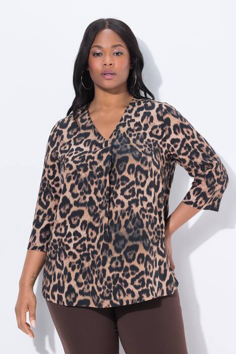 Tunique en lyocell, décolleté en V et manches 3/4, motif léopard